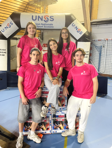 L’équipe est composée de : Elisa MALCHERE (Terminale), Inés MALCHERE (Seconde), Arthur GAUDIN-LEPRINCE (Première), Thomas LEFRANCOIS CHARLES (Terminale) et Alice LUCAS MOLY (Seconde) jeune officiel validée niveau national,