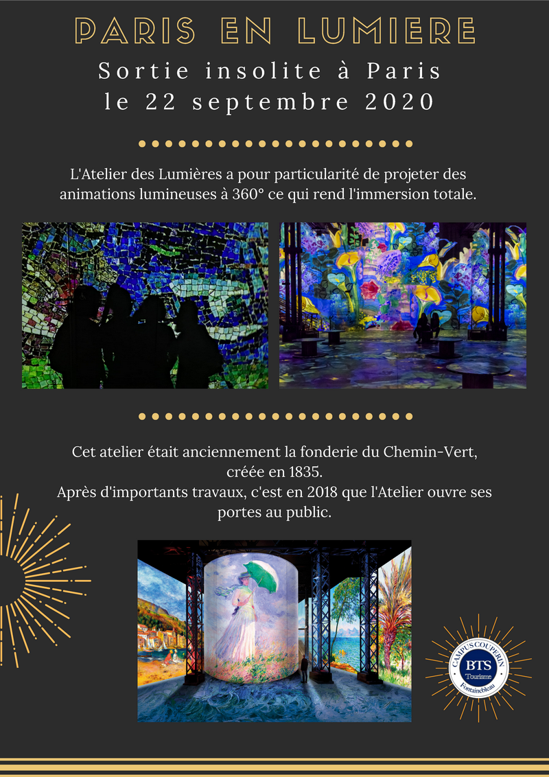 Puis l’après-midi, un second groupe a pris le relais en nous présentant l’Atelier des Lumières. Cette visite immersive nous a permis de découvrir les œuvres de MONET, RENOIR et CHAGALL. »