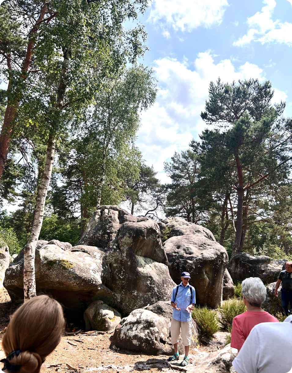 Unevisite guidée en forêt de Fontainebleauanimée par un géologue-conférencier, axée sur les grès de Fontainebleau avec une mise en perspective intéressante des formations rocheuses locales par rapport à celles d’Angkor.