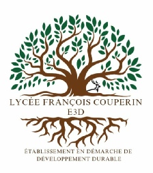 Cette année Couperin met en scène plusieurs projets pour l’E3D (Etablissement en Démarche de Développement Durable), notre établissement est classé niveau 1, nous espérons atteindre le niveau 2. Les projets sont menés avec enthousiasme par une trentaine d’éco-délégués/volontaires motivés et encadrés par les deux référentes (une professeure de mathématiques et une adjointe Technique de Laboratoire). Depuis le début de l’année, ils se sont engagés à travers plusieurs actions :