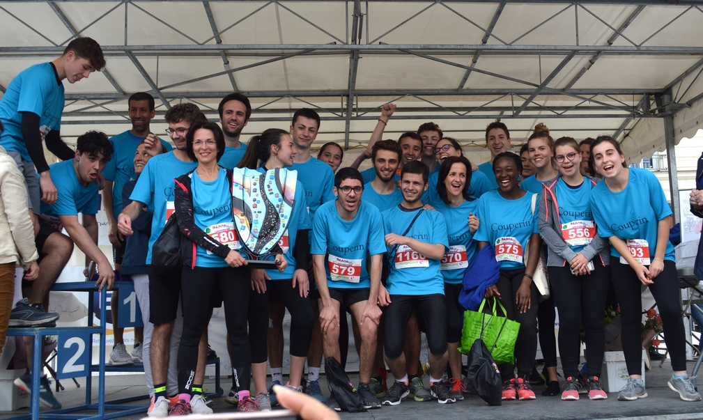 Pour le 10 km, notre équipe du lycée Couperin a été récompensée avec La coupe du groupe le plus important par son nombre de participants.